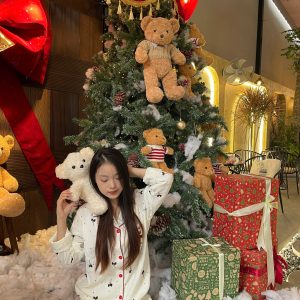 - Màu nền kem giúp tôn da và phù hợp với phong cách dễ thương, chụp ảnh rất đẹp, đặc biệt trong không gian Noel.