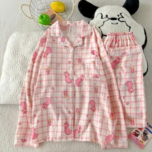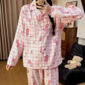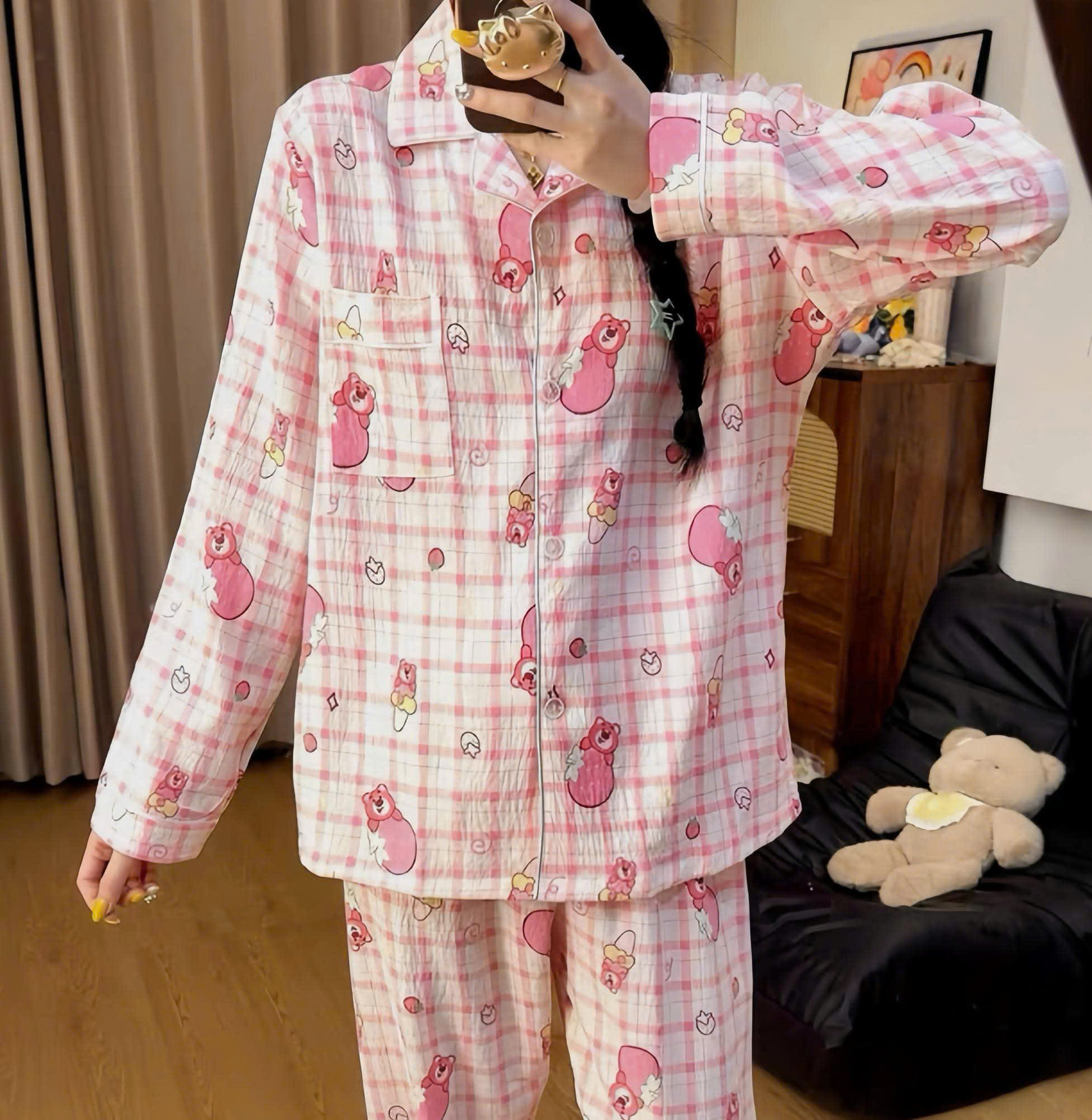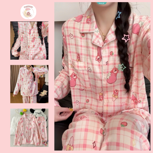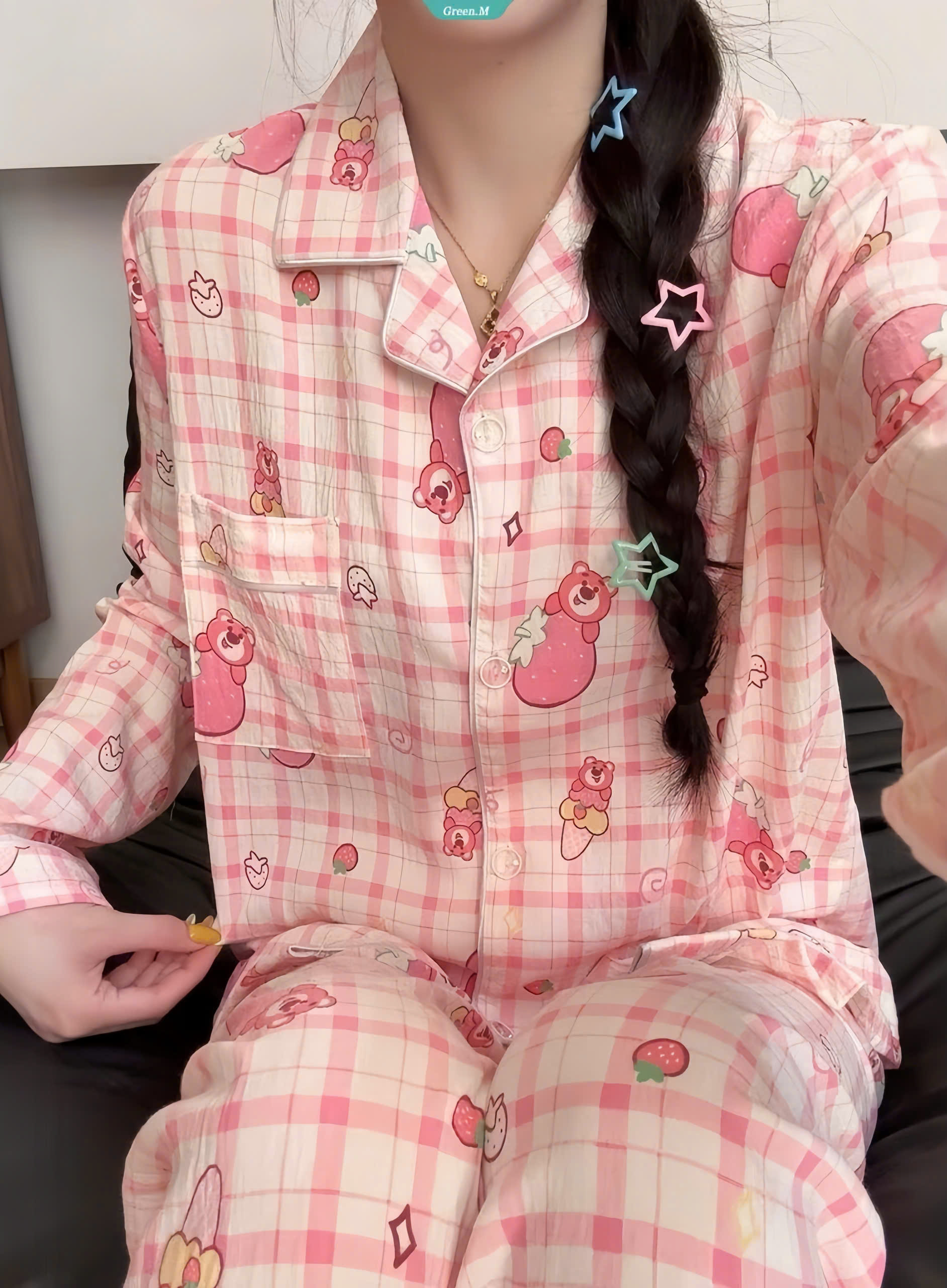 Bộ Đồ Ngủ Nữ Dài Tay Hoạ Tiết Gấu Dâu Cute