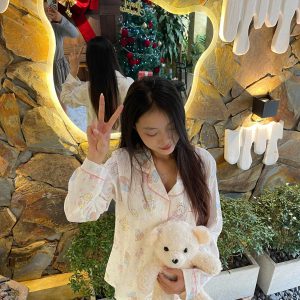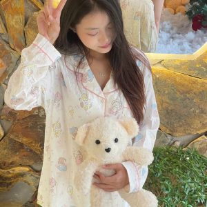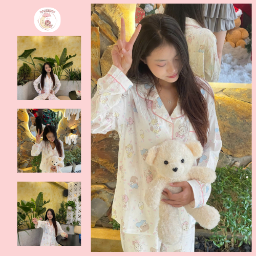 Bộ Đồ Ngủ Nữ Dài Tay Hoạ Tiết Mèo Xinh