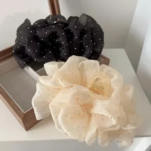 Phụ Kiện Tóc Nơ Bản To Đính Đá 2 Mặt Bằng Vải Voan Siêu Xinh