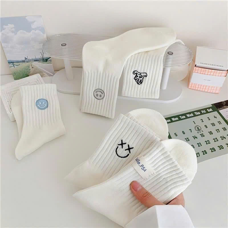 Tất Vớ màu kem hello kitty - cổ cao phong cách Lolita